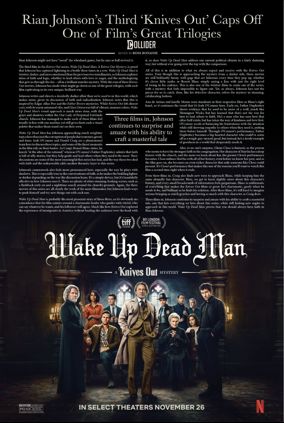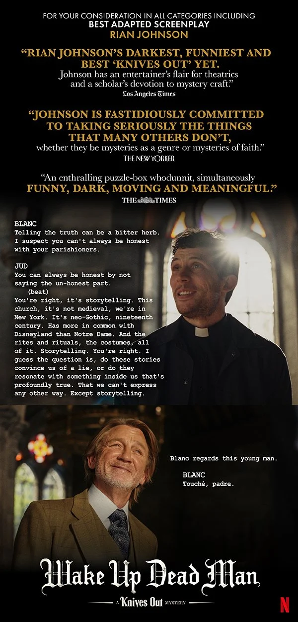 Led the awards creative campaign for Wake Up Dead Man, providing creative strategy and direction for all media placements, as well as collaborating with the title’s launch team to supply quotes for launch assets.